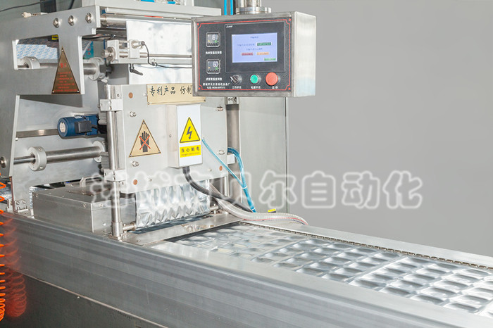 鋁箔拉伸膜真空包裝機適用于熟食、果蔬、海產品、冷凍塊肉、豆制品、中藥材、五金、 電子元件、,日化用品等物品的真空包裝或充氣全自動拉 伸熱封包裝。該系列包裝機除隨機配備的模具外,可以根據用戶不 同產品需要設計訂做模具,亦或在同一臺機器上進行拉伸膜包裝和托盤包裝。